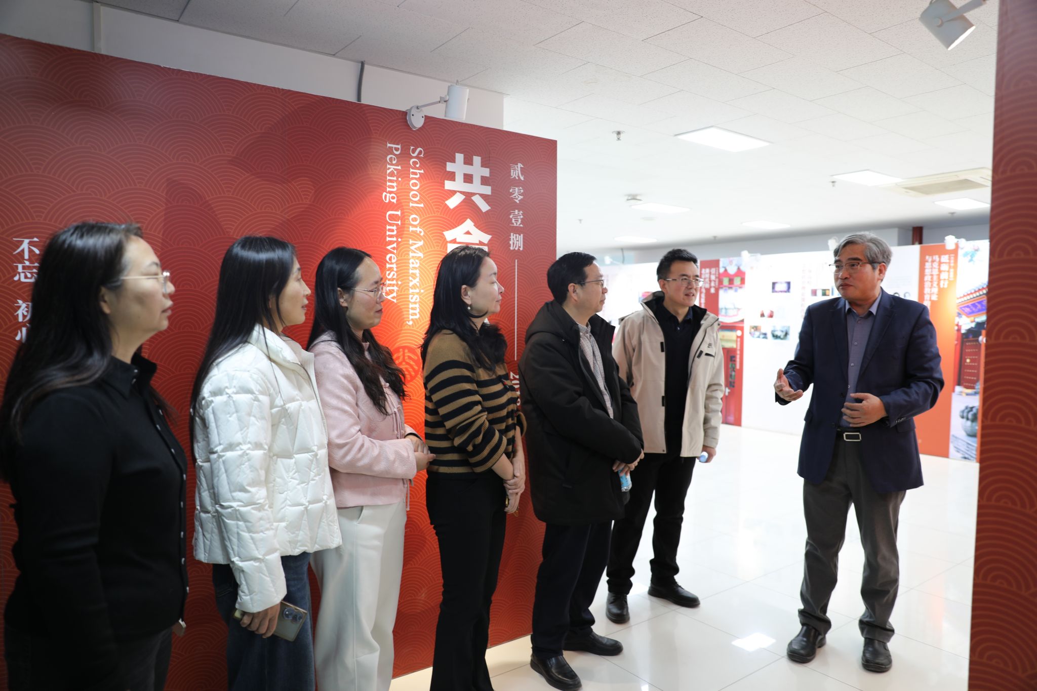 在北京大学365英国上市公司,学院党委书记孙来斌、副书记李石生、院长助理钟启东等热情接待了调研组一行。沿着习近平总书记视察北京大学365英国上市公司的足迹,孙来斌向调研组详细讲解了“北京大学与马克思主义——共命运同前进”主题展内容,李石生以“思政高原、学术高峰、人才高地”为主题作学院发展报告。