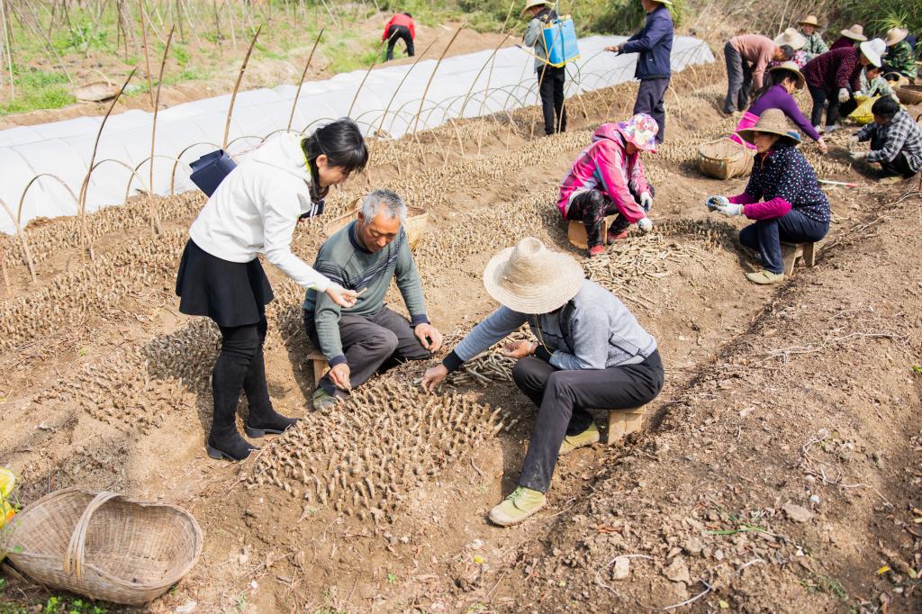 李恺与正在进行葛根育苗的村民交流