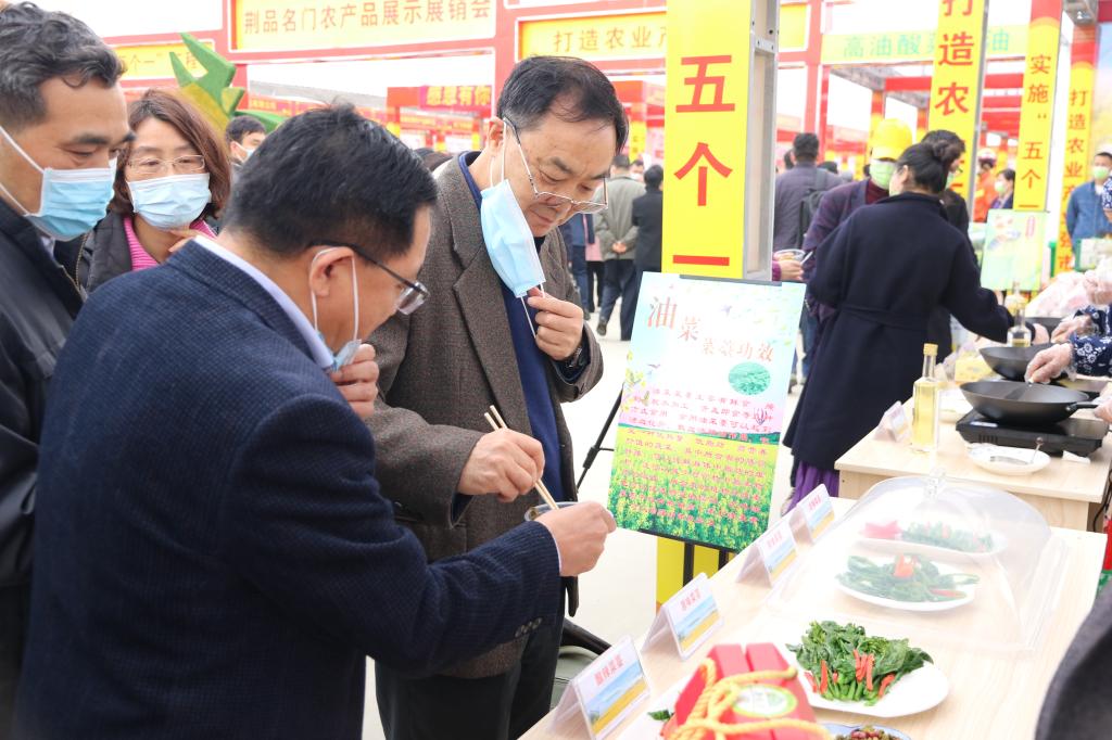 李召虎品尝油菜种植产业产品