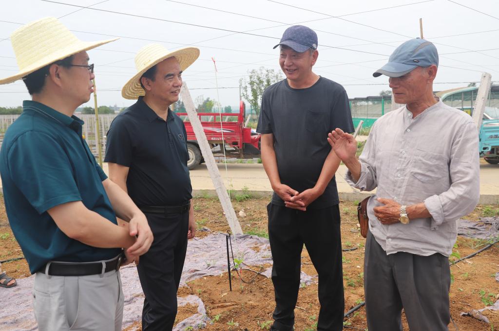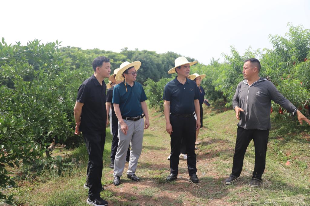 (调研杨冲村君丰家庭农场水果种植基地  吴斌 摄)