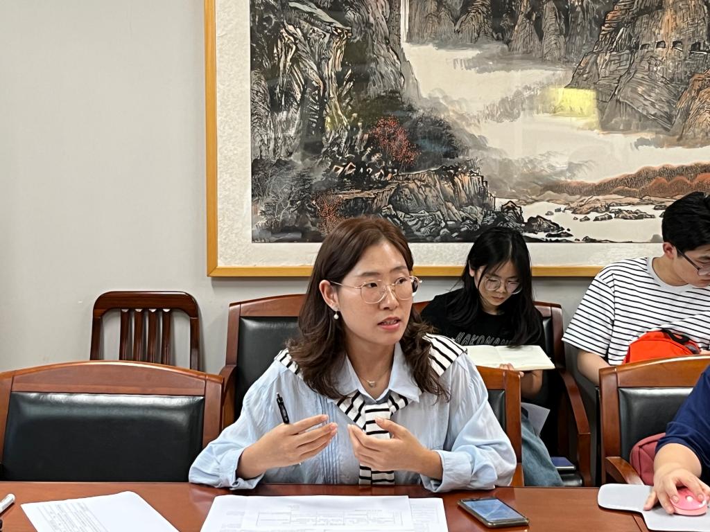 (孟鑫汇报附小心理健康课程安排 阿勒合斯·木合买提摄)