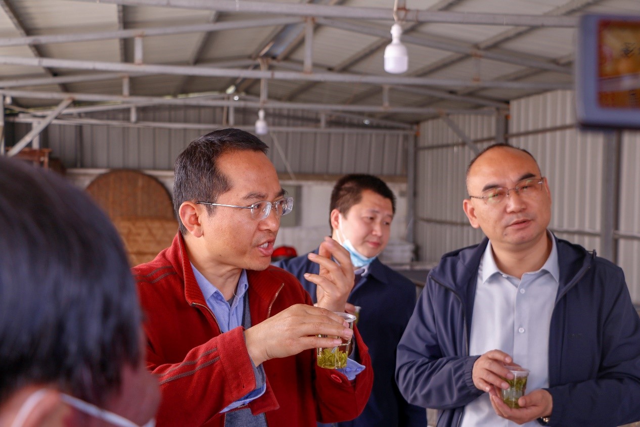 园艺林学学院教授、茶学专家黄友谊为茶叶种植基地发展出谋划策(通讯员 周子恒 摄)