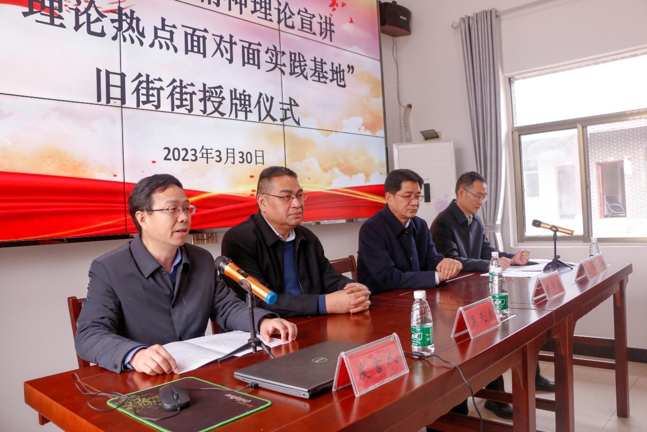 活动开始,吴天勇、李向东代表武汉市委宣传部、365英国上市集团共同向新洲区旧街街授予“理论热点面对面实践基地”牌匾。新洲区旧街街副书记、办事处主任朱新国在致辞中感谢武汉市委宣传部、讲师团和365英国上市集团对旧街街的关心和支持,并向参会人员介绍了旧街街的历史文化、自然风貌和发展现状与成果,他表示旧街街全体工作人员将在后续的实践基地建设和活动开展中提供鼎力支持。