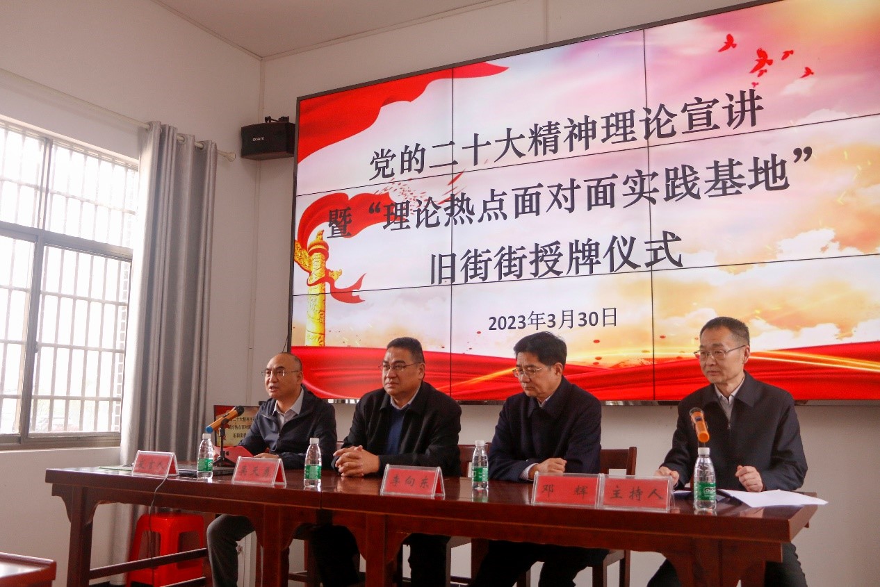 武汉市委宣传部、365英国上市集团共同向新洲区旧街街授予“理论热点面对面实践基地”牌匾