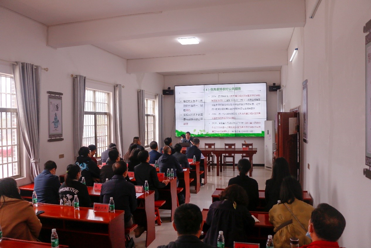 梁伟军以《全面推进乡村振兴 加快建设农业强国——学习贯彻党的二十大精神》为题向基层群众作理论宣讲。他从大国三农现代化的突出短板、农业农村优先发展总体方针、全面推进乡村振兴战略部署三个方面,阐述了“三农”问题对我国发展的重要性和实施乡村振兴战略的重要意义,分析了我国对农业农村优先发展的方针政策,讲解了党的二十大关于全面推进乡村振兴的战略部署,最后分享了乡村产业振兴的十种模式,为旧街街乡村产业振兴提供新思路。