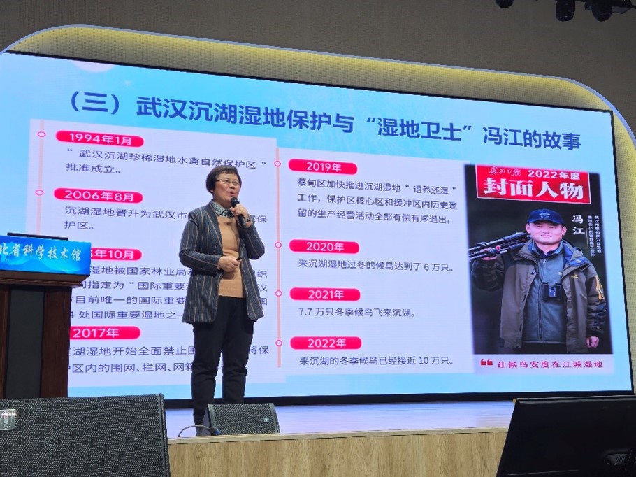 每年4月1日是“国际爱鸟日”。今年4月1日至7日,是湖北省42届“爱鸟周”,活动主题为“完善保护体系,护佑候鸟迁飞”。3月29日下午,我院张利华老师应湖北省科技馆影视科普部邀请,结合科技馆科普影片《北极荒原》,为光谷第二初级中学的二百多名师生,做了一场关于候鸟迁徙与湿地保护为主题的科普讲座。讲座讲述了湿地保护对候鸟保护的重要意义,倡导增强鸟类栖息地保护和爱鸟护鸟意识,提升生态文明素养。
