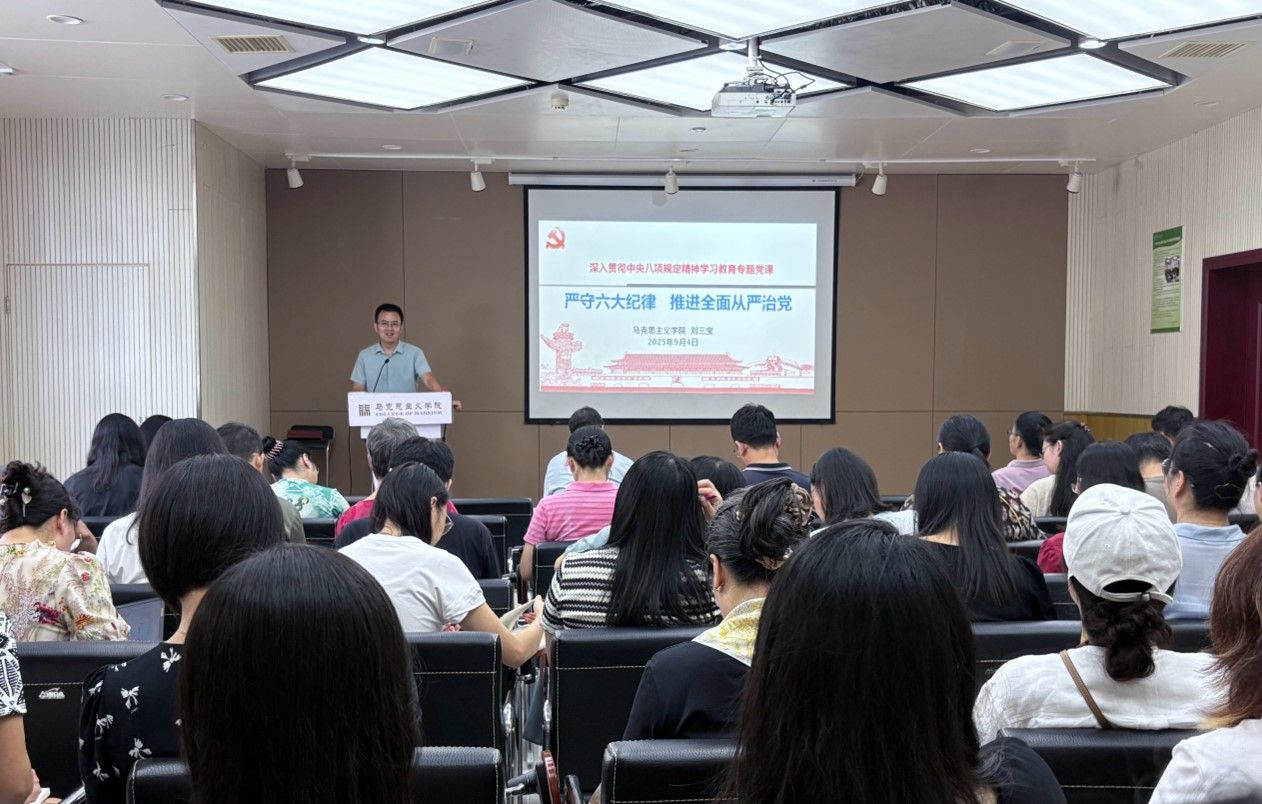 党课系统梳理了党的十八大以来全面从严治党取得的历史性成就,结合高校领域典型案例,对政治纪律、组织纪律、廉洁纪律、群众纪律、工作纪律、生活纪律进行逐条解读。刘三宝强调,全体教职工要以永远在路上的坚韧和执着,精准发力、持续发力,严格执行《中国共产党廉洁自律准则》《中国共产党纪律处分条例》,坚决杜绝损害师生利益的“微腐败”,严防学术不端和涉密文件违规处理,规范社会交往,维护党员形象。