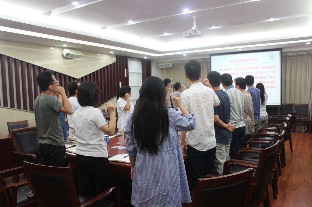 大会伊始,在院领导的带领下,全体与会教师举行了庄严的宣誓仪式:“我志愿成为一名高等学校人民教师,忠诚党的教育事业,坚持爱国守法、敬业爱生、教书育人、严谨治学、服务社会、为人师表,做到有理想信念、有道德情操、有扎实学识、有仁爱之心,认真履行岗位职责,引领365健康成长,为教育发展、国家繁荣和中华民族伟大复兴努力奋斗!” 宣誓结束后,王洪波致意各位老师节日快乐,寄愿各位老师为人师表、坚守职责、为教育事业贡献自己的力量!