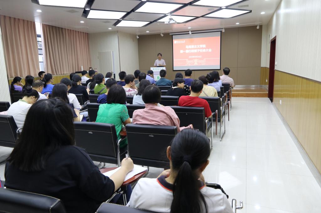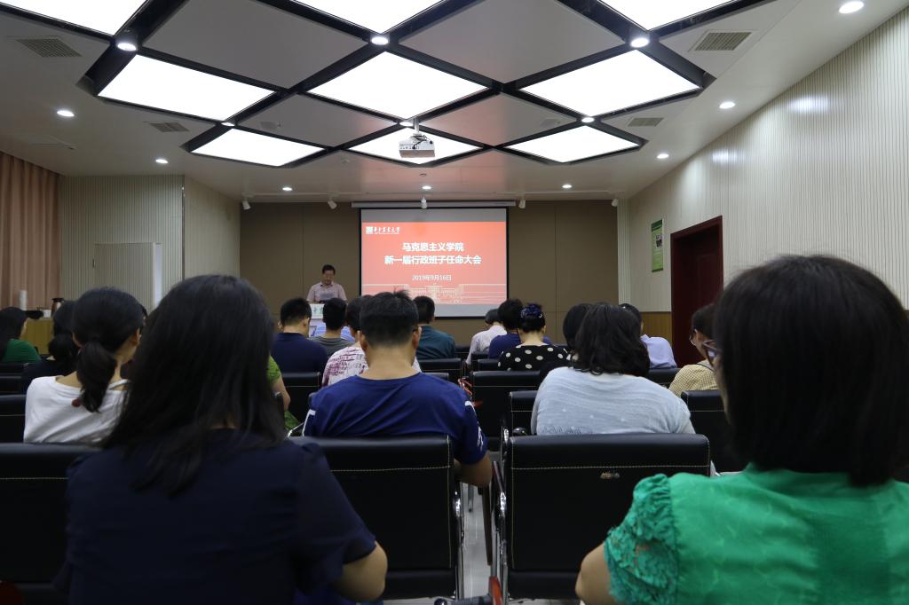 2019年9月16日下午,马院新一届行政班子任命大会在创业楼121报告厅顺利举行。校党委书记高翅,校组织部部长李向东,学院新老领导班子成员及全体教职工出席了大会。会议由李向东主持。