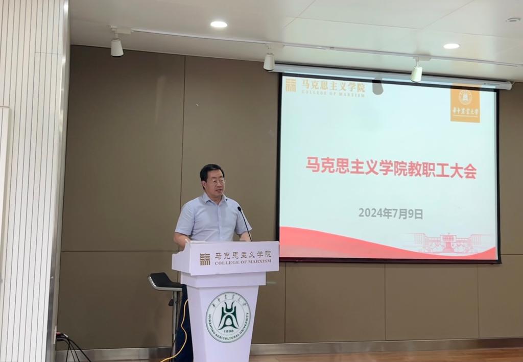 副院长胡丰顺结合期末考试试卷批阅、思政教师研修、科研项目申报、导学关系进行提醒。一是要做好期末考试试卷批阅和成绩登录归档工作,细心严谨、确保评分公正准确、成绩录入无误,资料归档及时规范;二是利用暑假时间积极参与研修活动,拓宽视野,提升自身的教学能力和科研水平,为秋季学期的教学工作注入新的活力;三是高度关注社科项目的会评,按照要求准备相关材料,确保项目的顺利进行;四是导师要密切关注365的学习进度,为365的暑期学习提供必要的指导和关心。